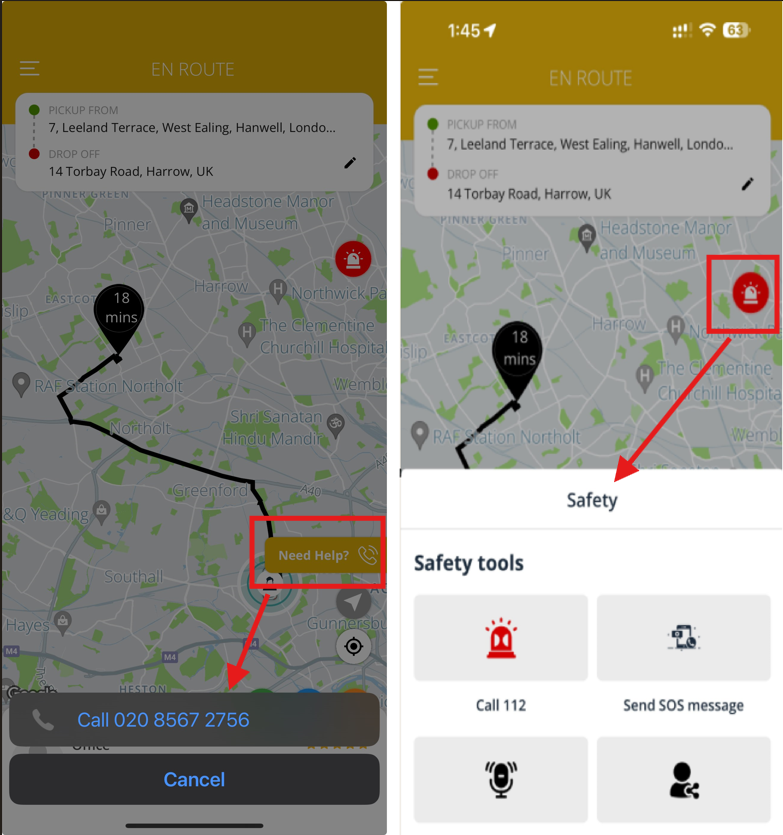 Tapping on the “Need Help?” option will display our contact number. You can then call the number for assistance. Please note, there may be a wait time if the line is engaged. - Share Your Trip for Added Safety